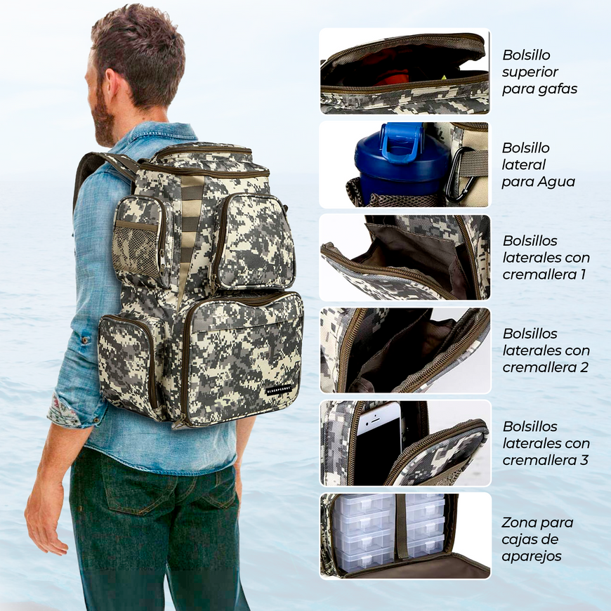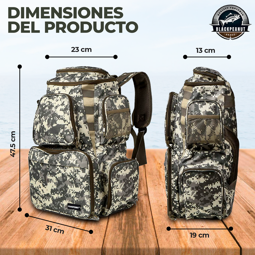 • Ya seas aficionado o experto, esta mochila se convertirá en tu mejor aliada. Con espacio amplio, cajas incluidas y materiales de calidad, tendrás todo lo necesario para que tus jornadas de pesca sean más cómodas, organizadas y exitosas.