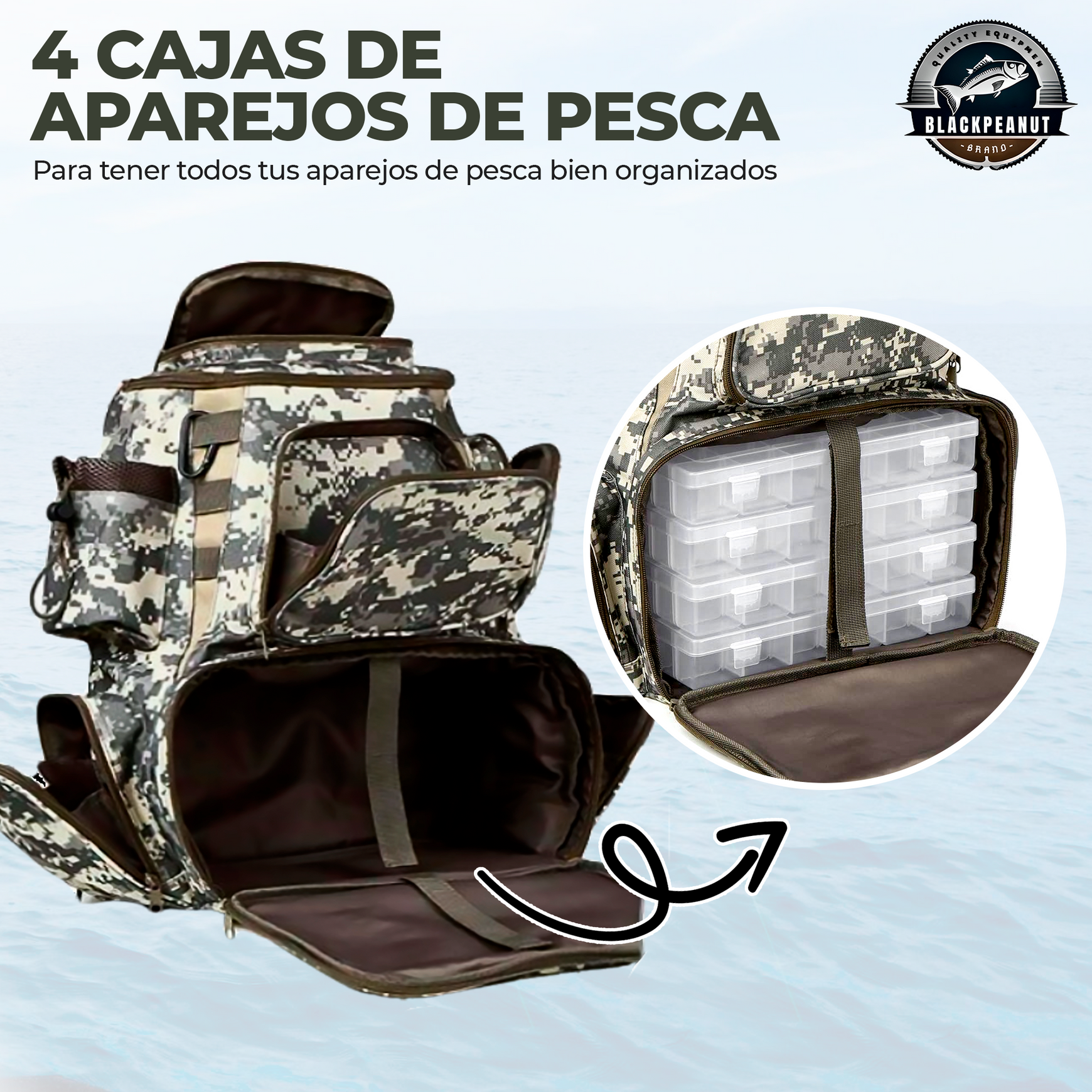 Mochila de Pesca con Cajas Incluidas 🎣🏺 Todo Bien Organizado Olvídate del desorden y de...