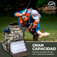 Olvídate del desorden y de perder tiempo buscando tus accesorios. Nuestra mochila de pesca con cajas incluidas cuenta con múltiples compartimentos estratégicamente diseñados para que puedas organizar de forma práctica todo tu material: desde anzuelos, plomos y vinilos hasta cebos artificiales, esencias o herramientas. Todo tendrá su lugar, siempre a mano, para que disfrutes más tiempo pescando y menos organizando.