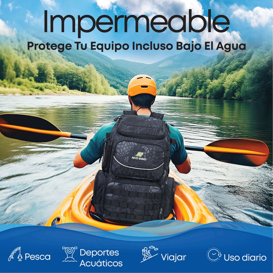 Fabricada con material impermeable, anti-desgarro y de gran resistencia, protege tus aparejos frente a la lluvia, la humedad y el polvo. Incluso en entornos exigentes, esta mochila mantiene tu equipo en perfecto estado, garantizando seguridad y confianza en cada salida.