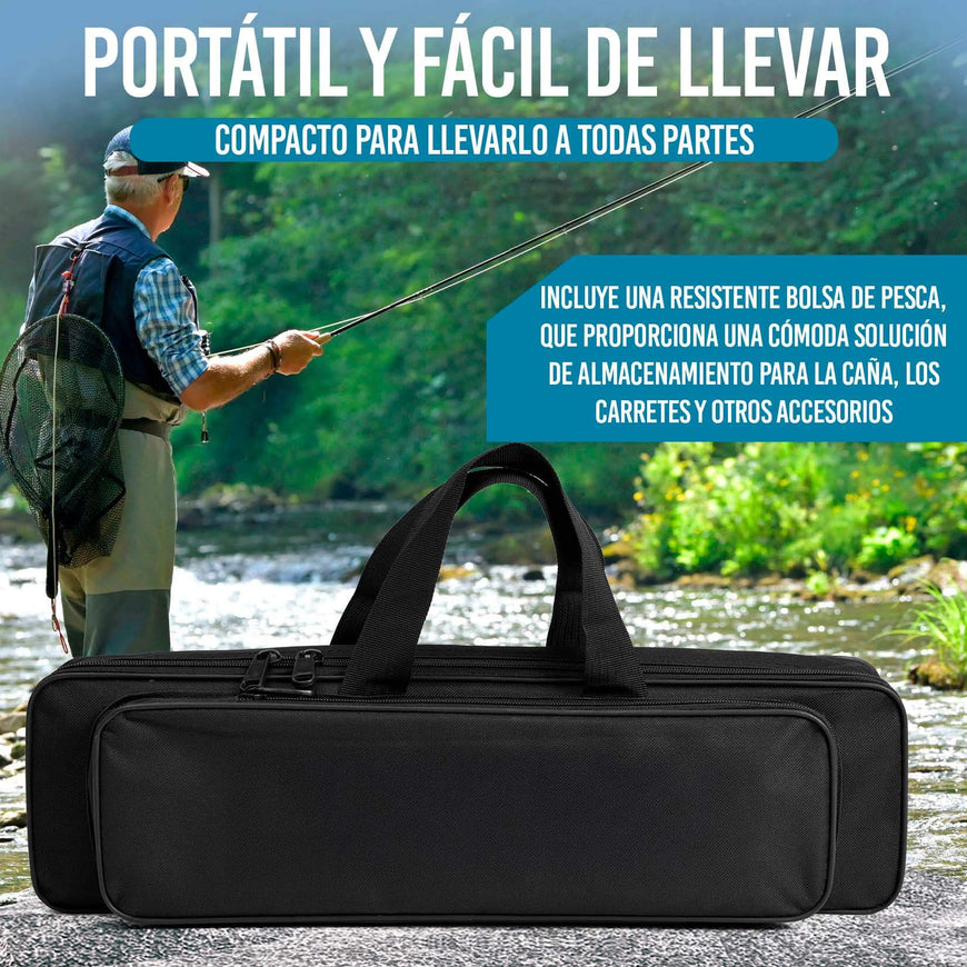 Caña de Pescar con Carrete, Señuelos, Sedal y Bolsa para Transporte