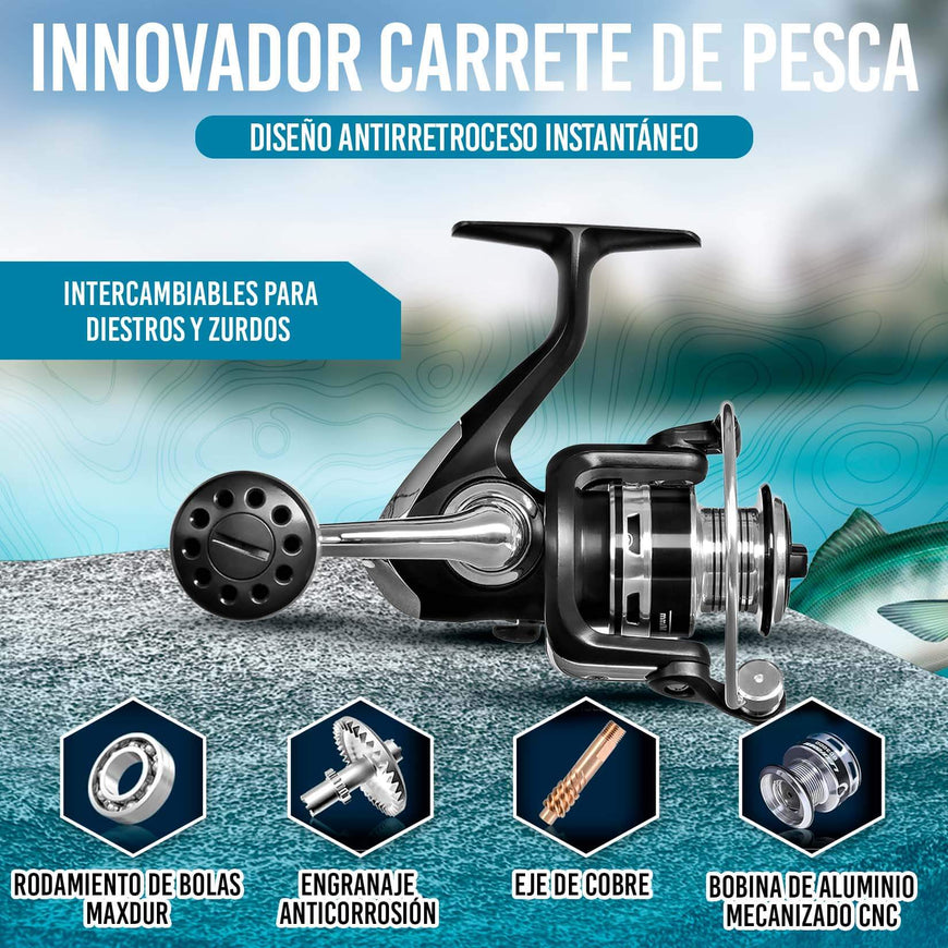 • 🎣 Todo en uno para tus jornadas de pesca: Disfruta de un completo kit de pesca que incluye caña, carrete, sedal, señuelos y una práctica bolsa. Ideal para principiantes o pescadores expertos
